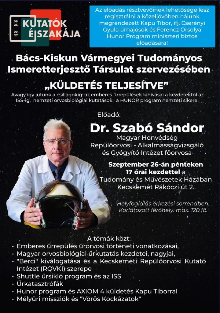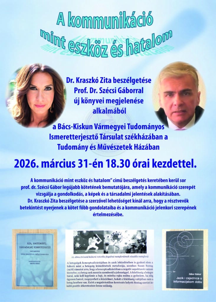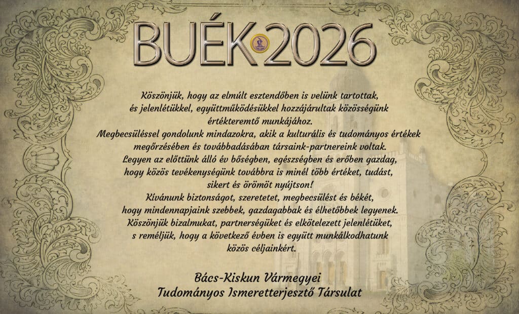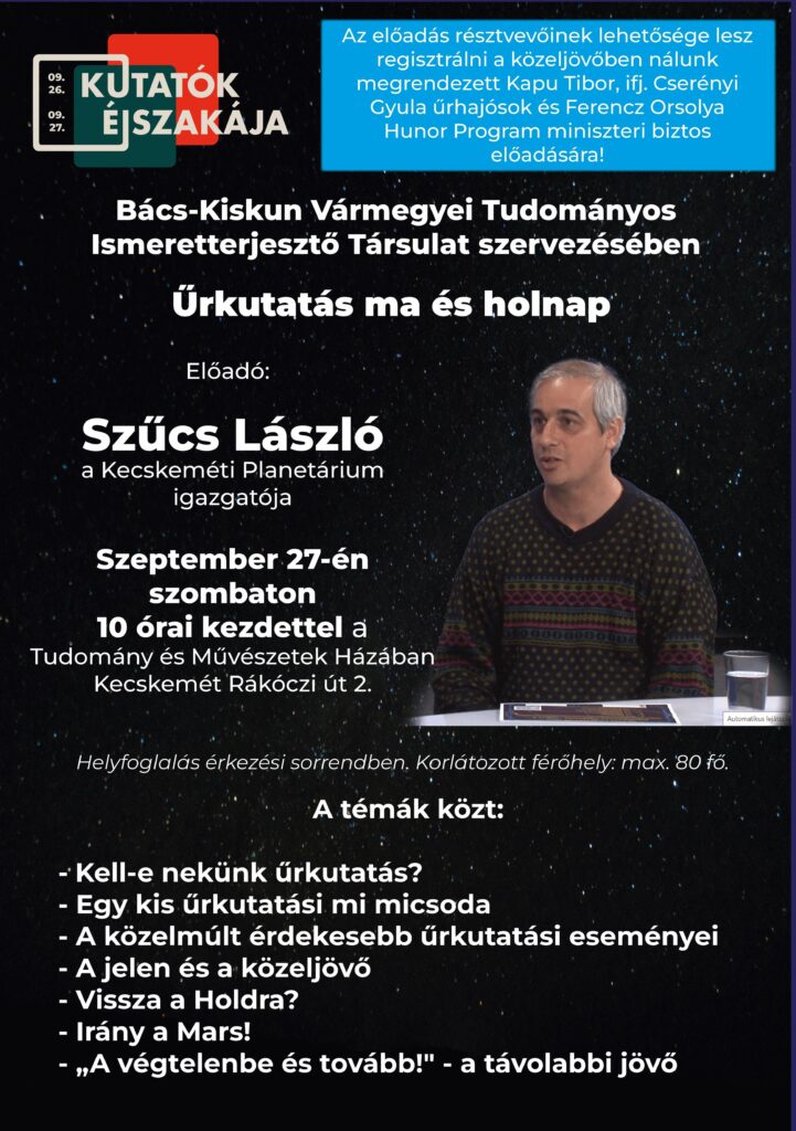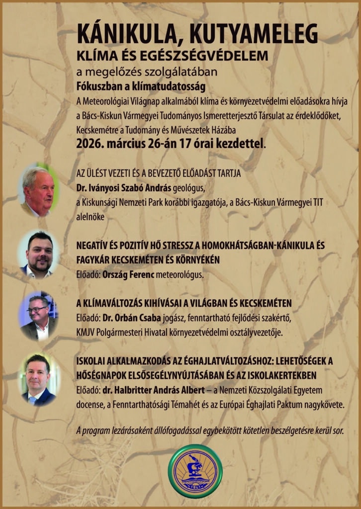 a Bács-Kiskun Vármegyei Tudományos és Ismeretterjesztő Társulat szervezésében, a Tudomány és Művészetek Házában (Kecskemét, Rákóczi út 2).