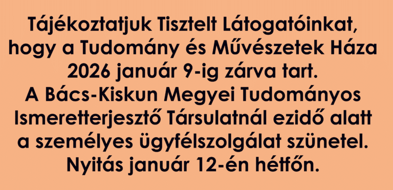 Bács-Kiskun Vármegyei Tudományos Ismeretterjesztő Társulat – Tudomány és Művészetek Háza – Kecskemét, Rákóczi út 2.